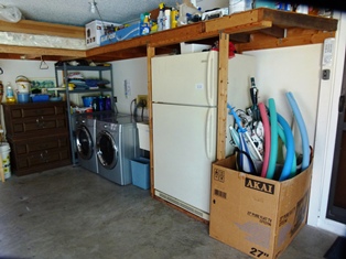 In der Garage befindet sich die Waschmaschine, der Wäschetrockner und ein Grill, welcher zur Verfügung gestellt wird. Außerdem kann dort ein Auto geparkt werden, was bei den Temperaturen in Florida ein großer Vorteil ist, da sich der Wagen dann nicht so stark aufheizt.
